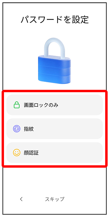- 指紋や画面ロック、顔認証を設定しないときは、をタップします。