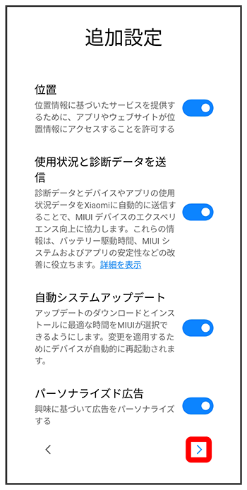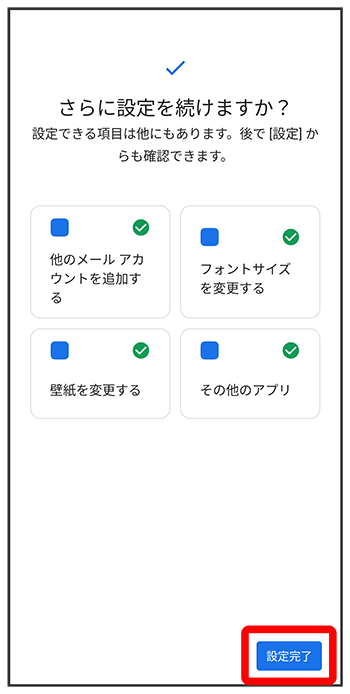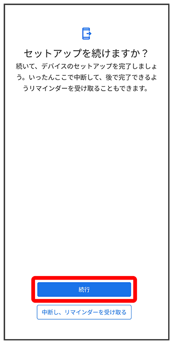 - 初期設定を中断し、あとでリマインダーを受け取るときは、をタップします。