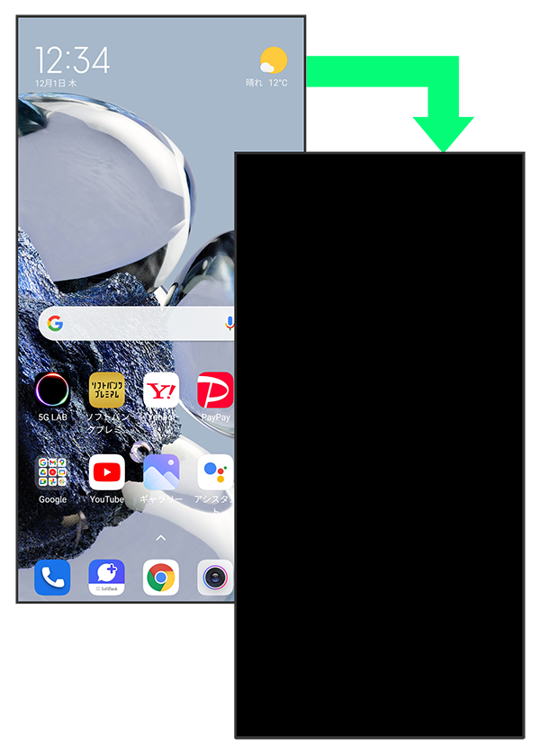 - 画面点灯時に電源キーを押すと、手動で画面ロック状態にすることができます。