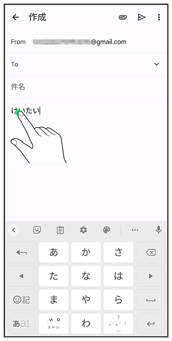 入力済みの文字をロングタッチ
