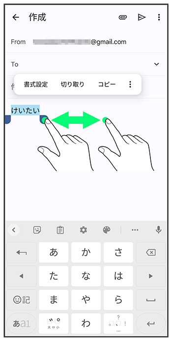 をドラッグして文字列を選択