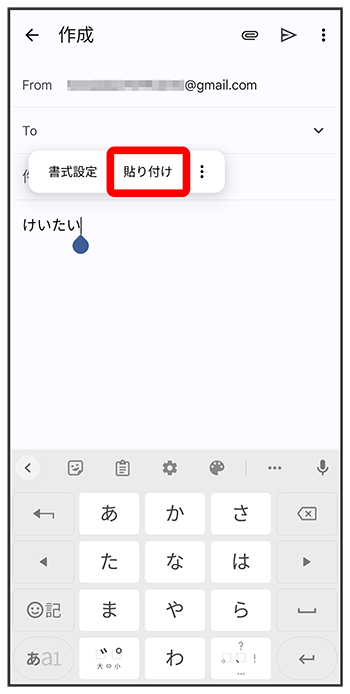 貼り付ける位置でロングタッチ