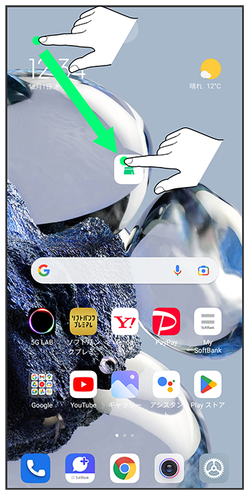 ホーム画面で対象のアイテムをロングタッチ移動したい場所にドラッグウィジェットやアイコンを削除する