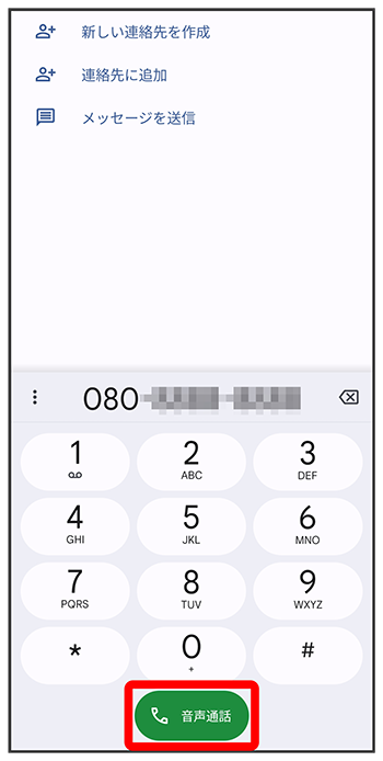 ロック画面で、画面を上にスワイプ/フリック電話番号を入力