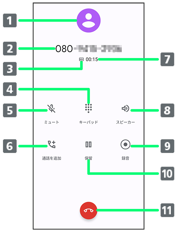 通話中は、アイコンをタップすることにより、次の機能が利用できます。