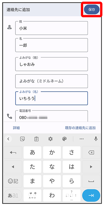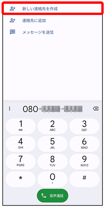 ダイヤルパッドをタップして登録したい電話番号を入力