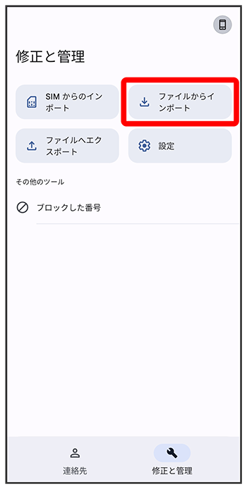 内部ストレージに保存(バックアップ)した連絡帳データを読み込み(インポート)できます。