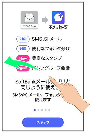- をタップした場合は、SMS/S!メールのみの利用となり、+メッセージは利用できません。