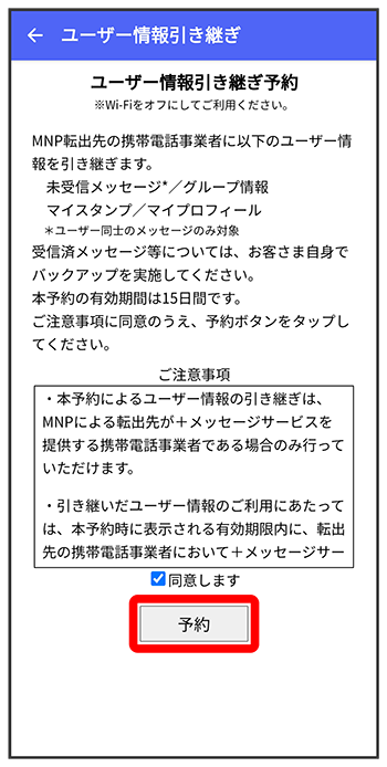 - ユーザー情報引き継ぎの有効期限は、ユーザー情報引き継ぎ予約をしてから15日間です。有効期限内に、お乗り換え後の端末でアプリを起動し、サービスを利用開始する必要があります。