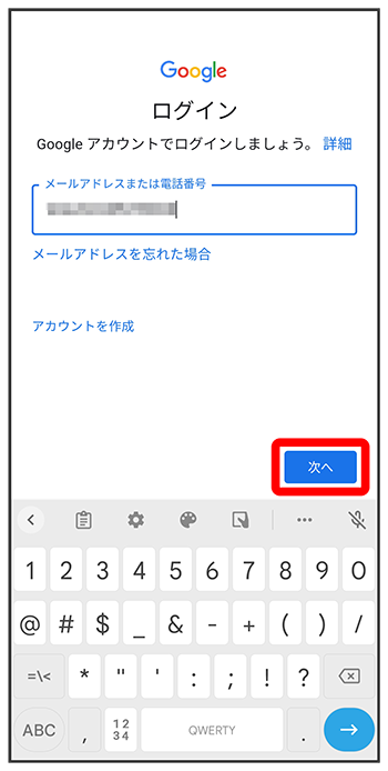 ユーザー名(メールアドレスまたは電話番号)を入力