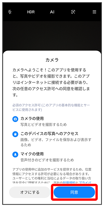 - 機能の利用を許可しなかった場合、アプリが正常に動作しないことがあります。