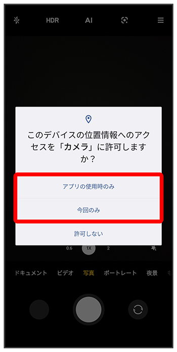 - をタップすると、一時的に利用が許可されます。