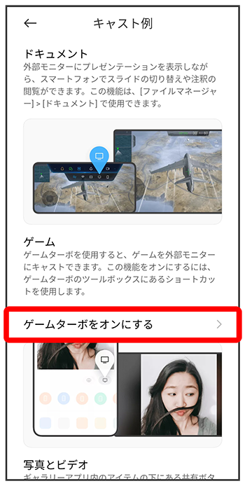 | ゲームDND1 | ・強化されたエクスペリエンス ゲーム中に明るさの自動調節機能を無効にしたり、読書モードを無効にしたりするかどうかなどを設定します。 ・ボタンとジェスチャーを制限 ゲーム中にボタン操作とフルスクリーンジェスチャー操作を制限するかどうかを設定します。 |
