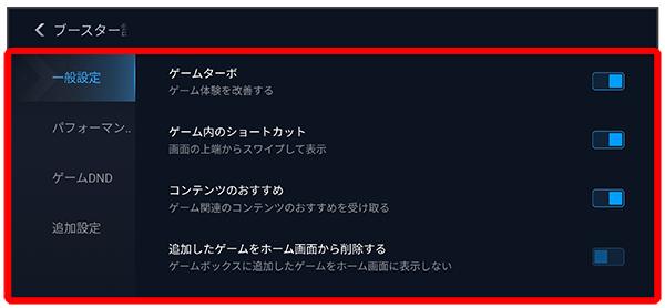 | 追加設定1 | タップしたときの動作などをゲームごとに設定します。 |