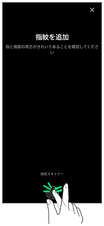 指紋設定画面で登録した指紋をタップ指紋認識センサー利用時のご注意