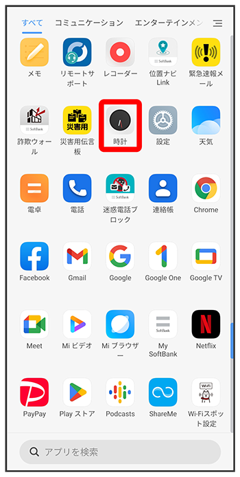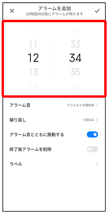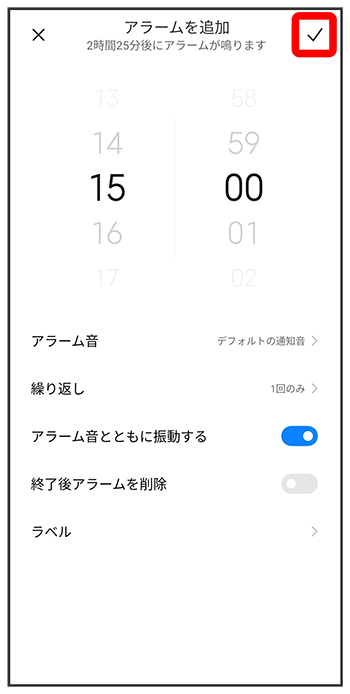 アラーム設定時刻になると、アラーム音やバイブレータでお知らせします。