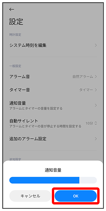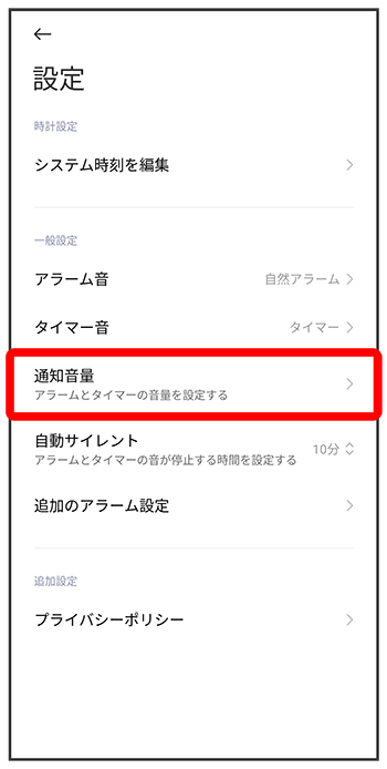 アラームの音量を変更する