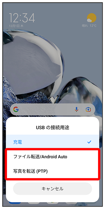 | 写真を転送(PTP) | 本機に保存されている画像ファイル(写真、動画)を、パソコンとやりとりできます。 |