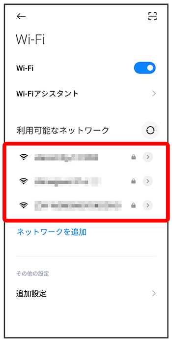 Wi-Fi設定画面で、接続中のWi-Fiネットワークの![]()