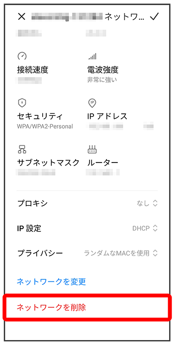 - Wi-Fiネットワークを削除すると、再接続のときにパスワードの入力が必要になることがあります。