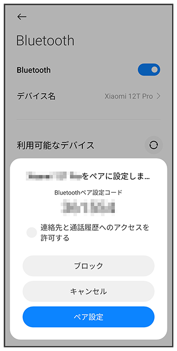 - 「利用可能なデバイス」欄に、近くにあるBluetooth®機器が表示されます。