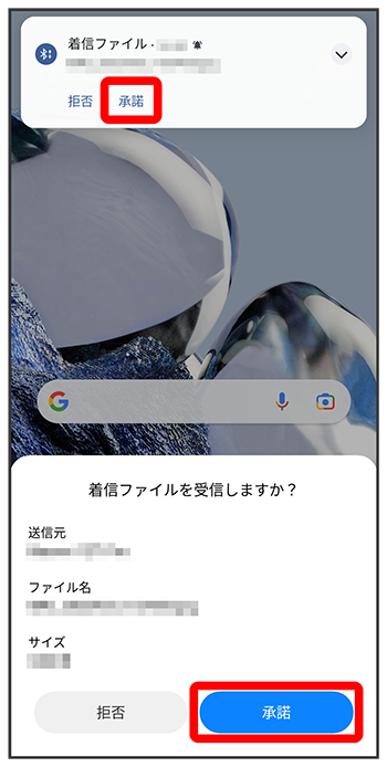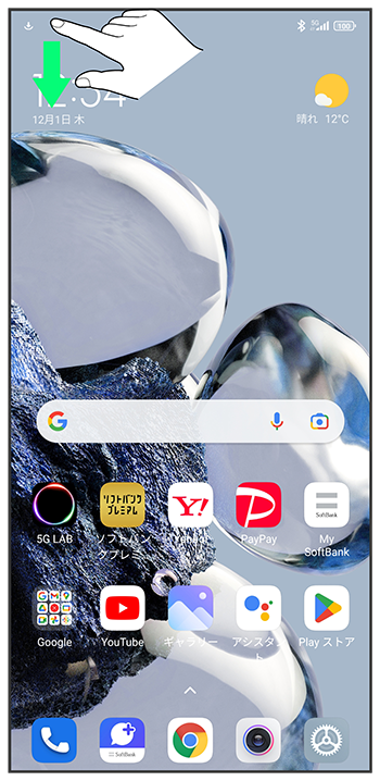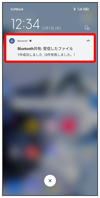 受信完了後、ステータスバー左側を下にスワイプ/フリック