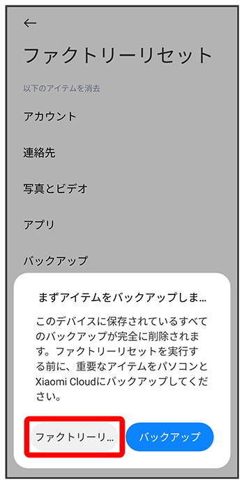 初期状態にリセットする