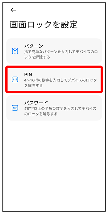 - すでに画面ロック解除方法を設定しているときは、ロックを解除する操作が必要です。