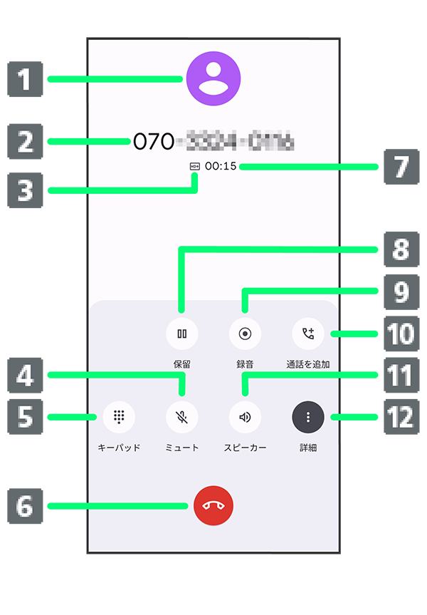 - 通話時間が表示されます。