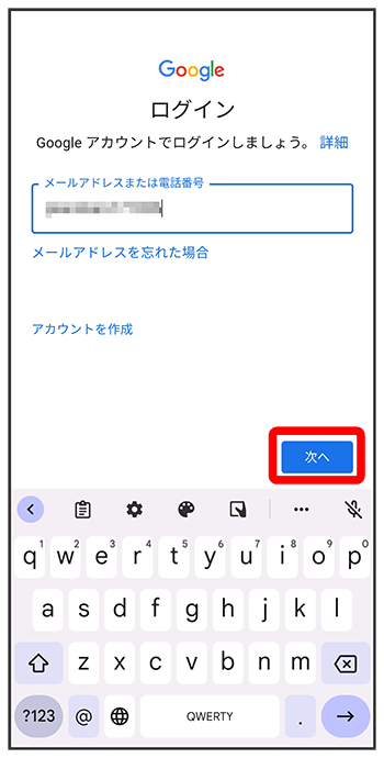 ユーザー名(メールアドレスまたは電話番号)を入力