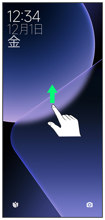 ロック画面を上にスワイプ/フリック