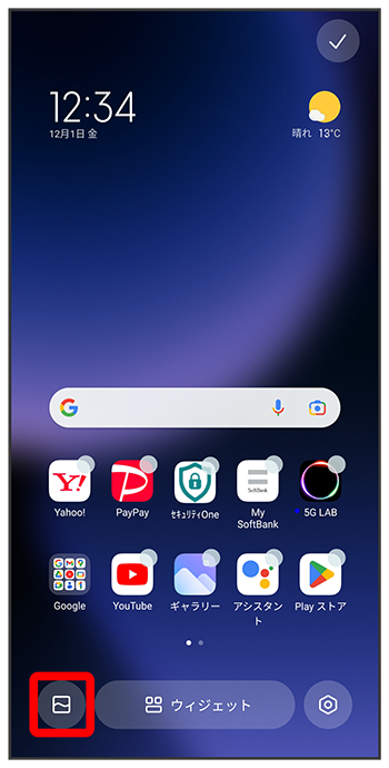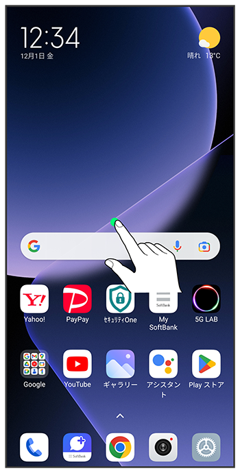 ホーム画面のアイコンがない場所をロングタッチ