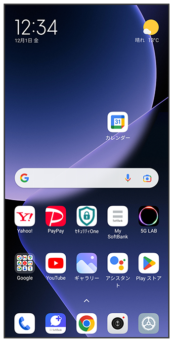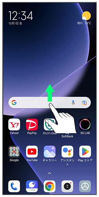 ホーム画面を上にスワイプ/フリック