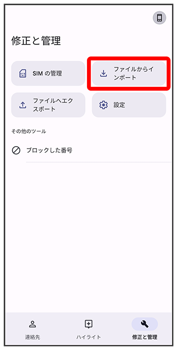 内部ストレージに保存(バックアップ)した連絡帳データを読み込み(インポート)できます。