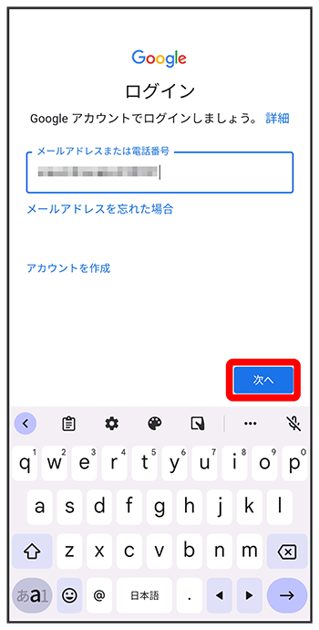 ユーザー名(メールアドレスまたは電話番号)を入力