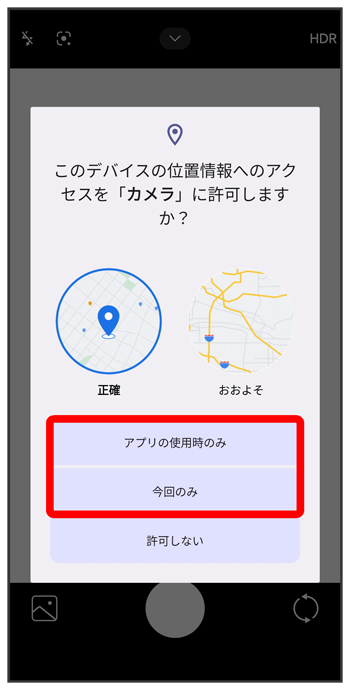 - をタップすると、一時的に利用が許可されます。