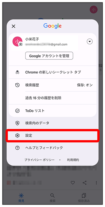 右上のアカウントアイコンをタップ