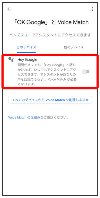 Voice Match機能を無効にする