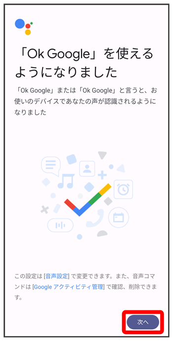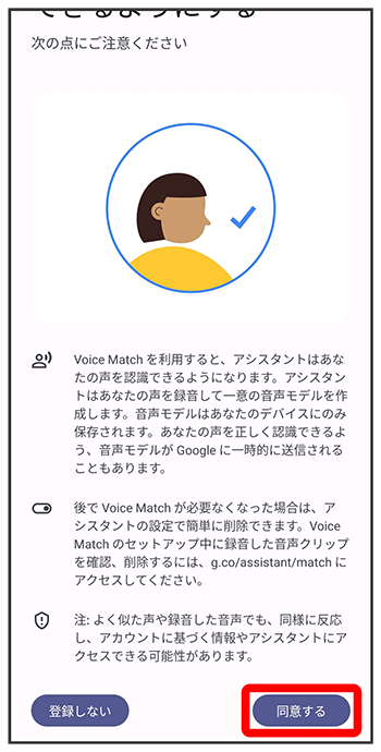 - 以前にVoice Match機能を設定したことがある場合は、が有効になります(