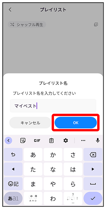 - をタップすると、新たにプレイリストを作成して曲を追加できます。