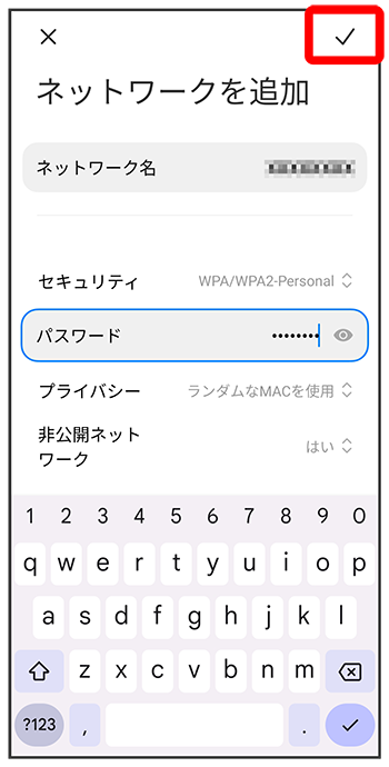 - セキュリティで保護されていないWi-Fiネットワークのときは、パスワードを入力する必要はありません。