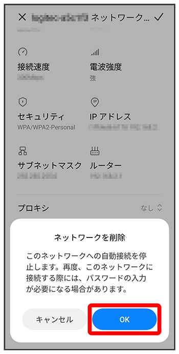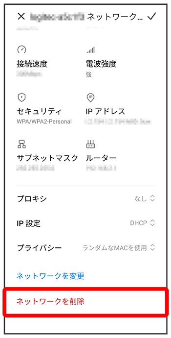 - Wi-Fiネットワークを削除すると、再接続のときにパスワードの入力が必要になることがあります。