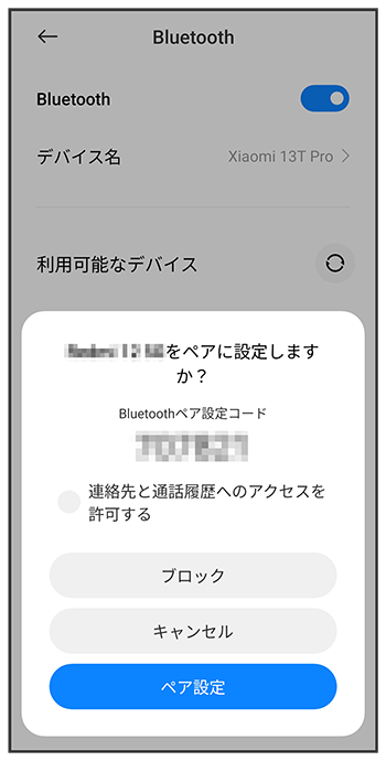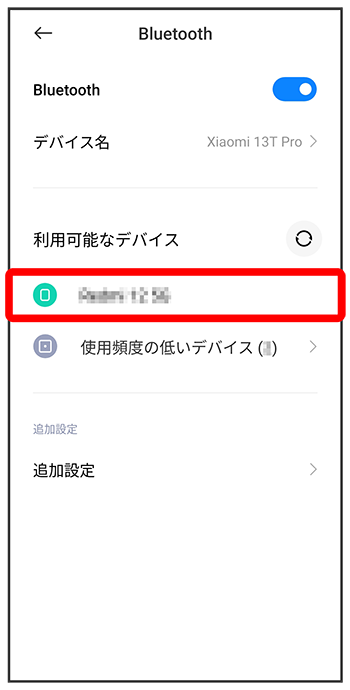 - 「利用可能なデバイス」欄に、近くにあるBluetooth®機器が表示されます。