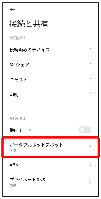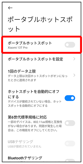 ポータブルホットスポット画面でネットワーク名を入力セキュリティを選択必要に応じてパスワードを入力