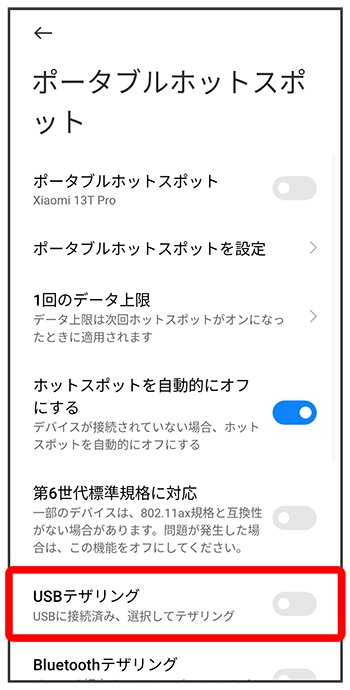 USBテザリング機能を利用する
