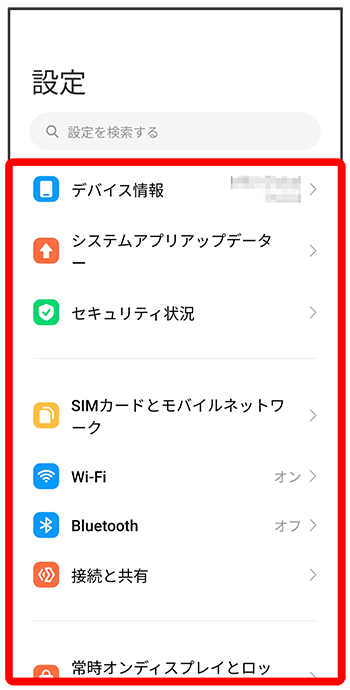 | デバイス情報 | デバイス名や電話番号などを確認することができます。 |