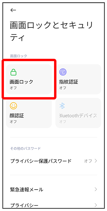 - すでに画面ロック解除方法を設定しているときは、ロックを解除する操作が必要です。
