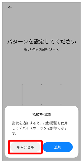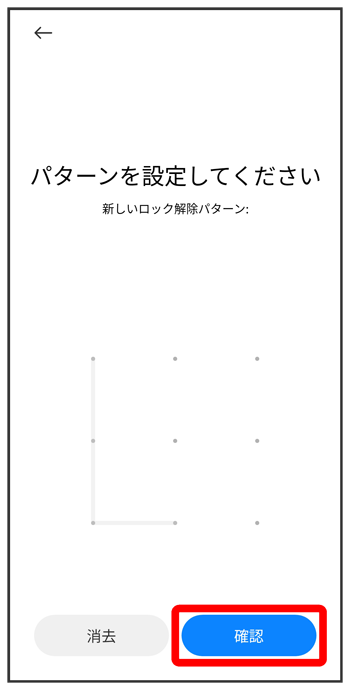 パターンを指でなぞって画面ロックを解除するように設定する
