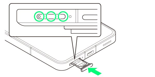 - ○部分をしっかりと押し、本体とSIMカードトレイにすき間がないことを確認してください。