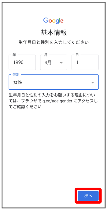 生年月日と性別を設定